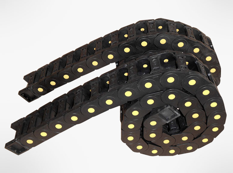[0002]拖鏈由若干個(gè)通過連接件鉸接的鏈節(jié)組成,其適用于使用在往復(fù)運(yùn)動(dòng)的場合,能 夠?qū)?nèi)置的電纜、油管、氣管、水管等起到牽引和保護(hù)作用,廣泛應(yīng)用于數(shù)控機(jī)床、電子設(shè) 備、石材機(jī)械、玻璃機(jī)械、門窗機(jī)械、注塑機(jī)、機(jī)械手、起重運(yùn)輸設(shè)備、自動(dòng)化倉庫等。