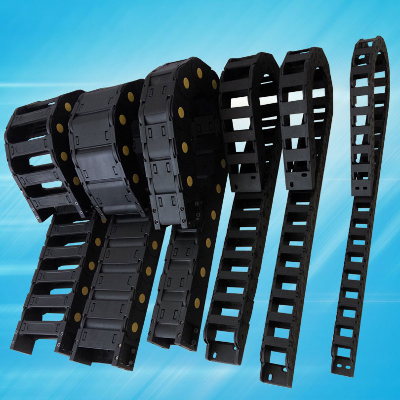 5. 拖鏈已被廣泛用于數控機床,電子設備,消防機械設備,石材機械,玻璃機械,門窗機械,注塑機,機械手,超重運輸設備,自動化倉庫等。塑料尼龍拖鏈又稱工程拖鏈,坦克鏈。拖鏈根據使用環境和使用要求的不同分為橋式,全封閉,半封閉三種.